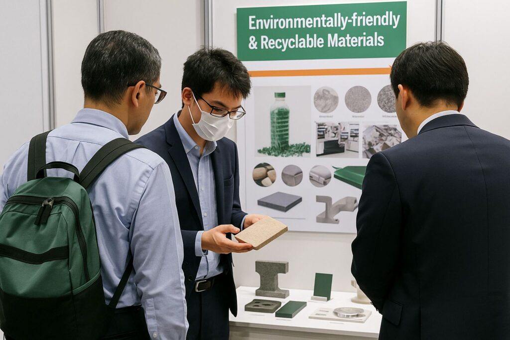 RoHS/REACH対応素材を用いたサステナブル部品設計プロセスの実例を展示。