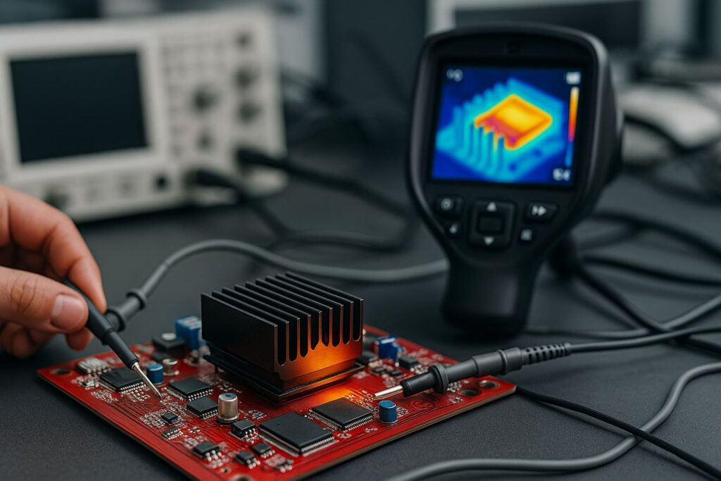 試作筐体で赤外線サーモグラフィ計測を実施し、解析モデルとの誤差を±5%以内に収束させることで再現性を確立。